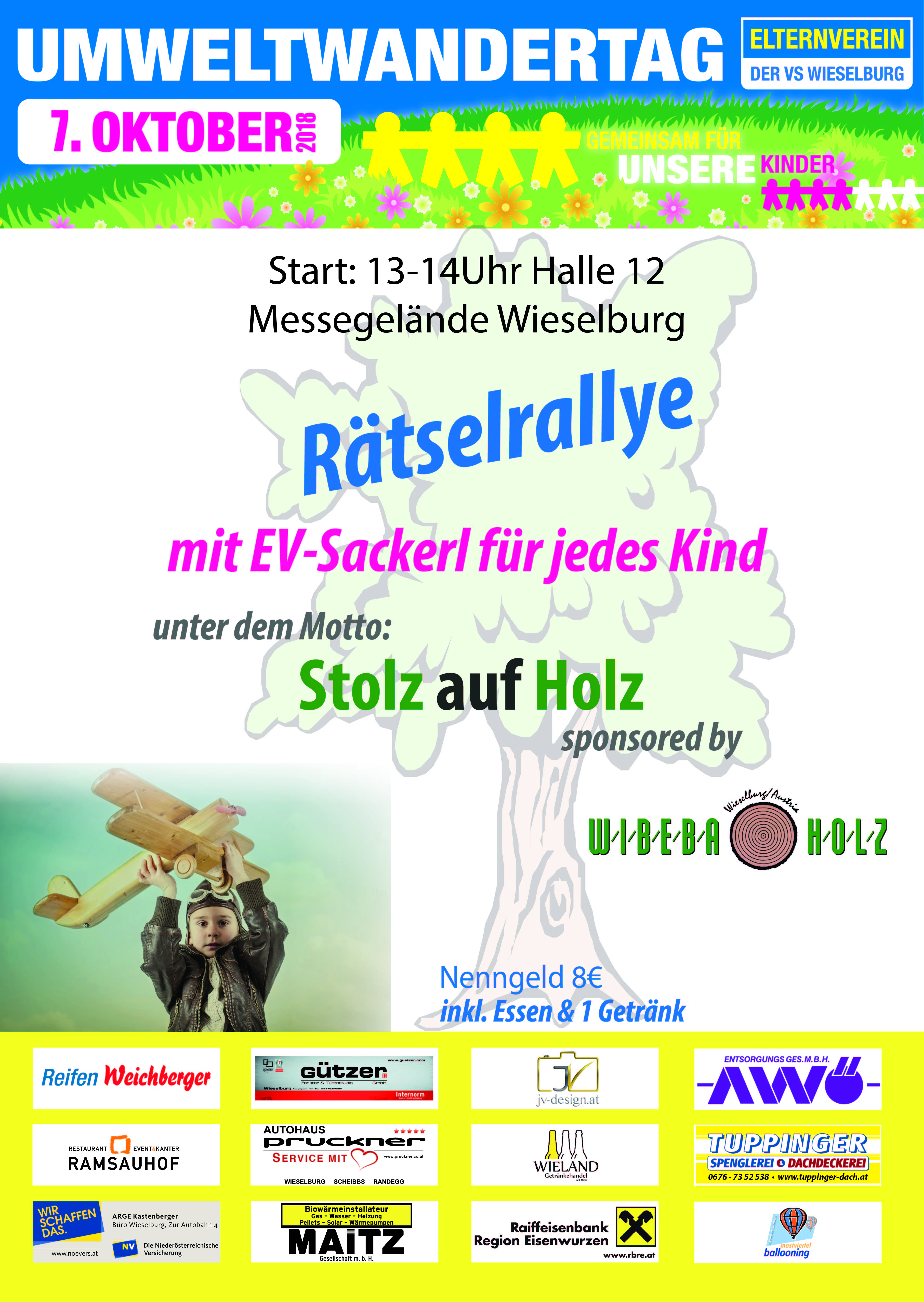 Das Thema lautet: "STOLZ AUF HOLZ" Die Route erstreckt sich über 7 km und führt durch das Stadtgebiet von Wieselburg in Richtung Petzenkirchen.